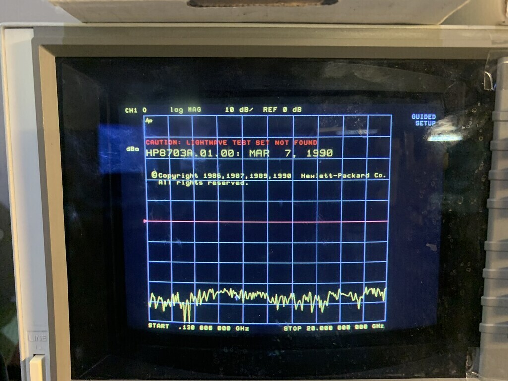 He stated. When powered up the unit complains about the missing optical testset but this does not seem to impair operation, when switched over to electrical testing the unit can measure all 4 S parameters with no issues! this is a great unit for someone who wants a compact VNA but can not afford a 8720B or for someone who has a broken 8720B and wants to get it back running.